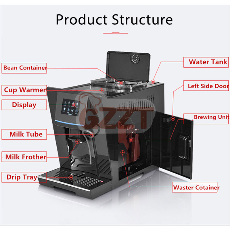 9. It can adjust the amount of coffee powder (strong coffee - light coffee), set the time of hot water, and have a fan cooling system.
