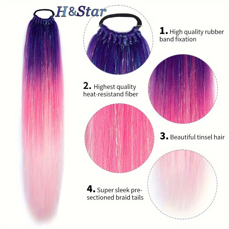 H&STAR 24Inch Synthetic Hair Ponytail Hair Extensions Hair Shiny Hair Ponytail Extension For Braiding Hair On Hair Tie Loose