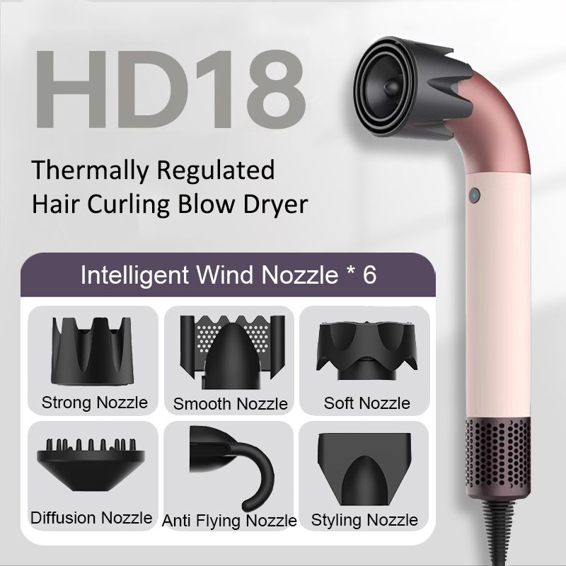 Hair Dryer 1400 Watt High Speed HairDryer Bend Pipe Professinal Hair-care Leafless Negative Ion Styling Tools with 6 Air Nozzles
