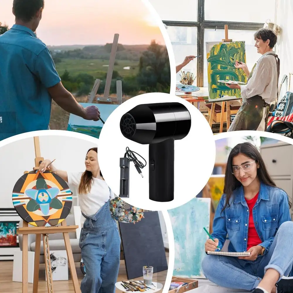 Create your art anywhere with this USB rechargeable cordless blow dryer. It's designed especially for art exams, painting creation, and other art activities. With low noise, it's perfect for business trips and travel. This is a good gift for any artist in your life.