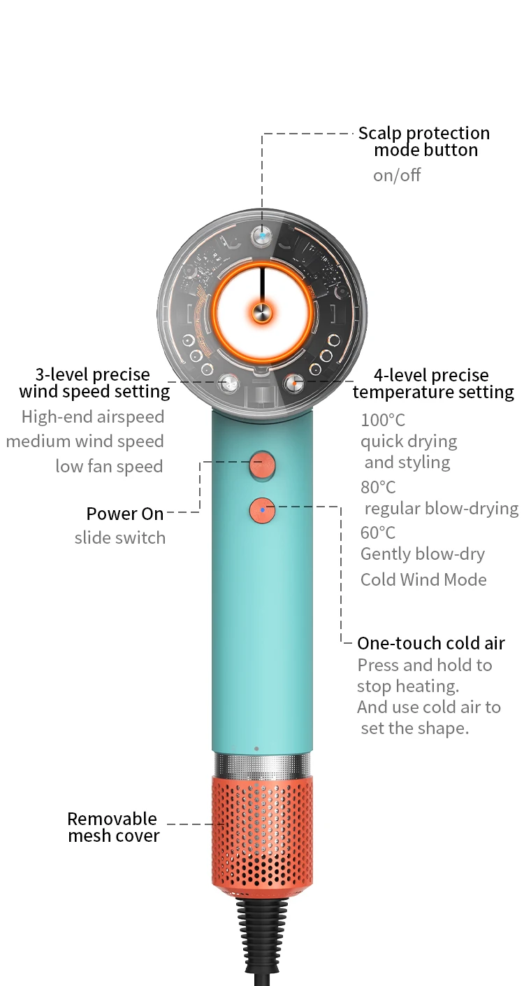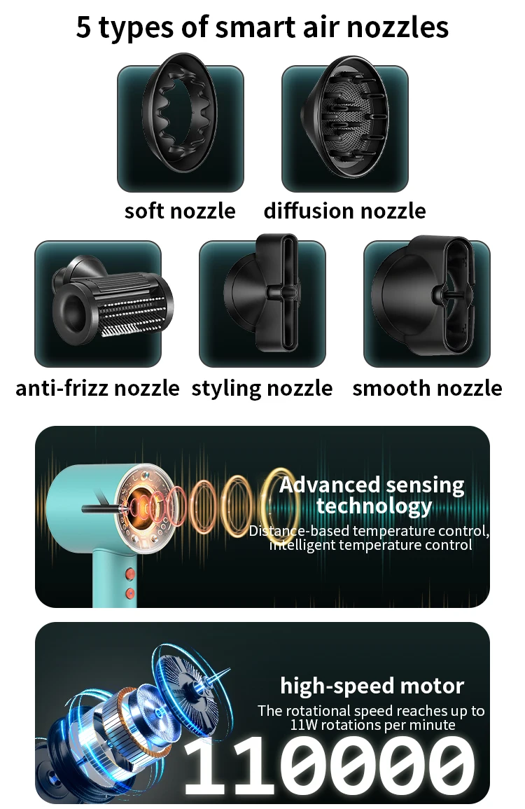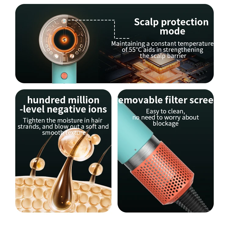 Hair Dryer with Negative Ions for Hair Care, Silent, Fast Drying, Temperature Control, High-Speed, Huaqiangbei Strong Wind Hd16 Hair Dryer