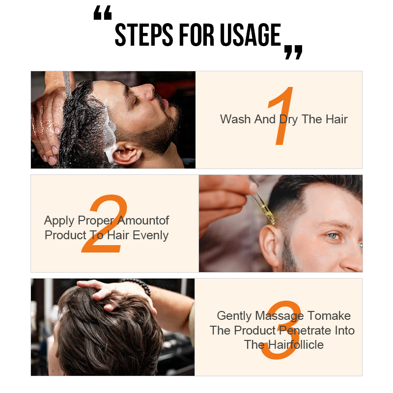 After drying your hair, apply a few drops to the scalp and massage with your fingers for 2-3 minutes, 2-3 times a day for better results. Do not wash your hair within 3 hours.