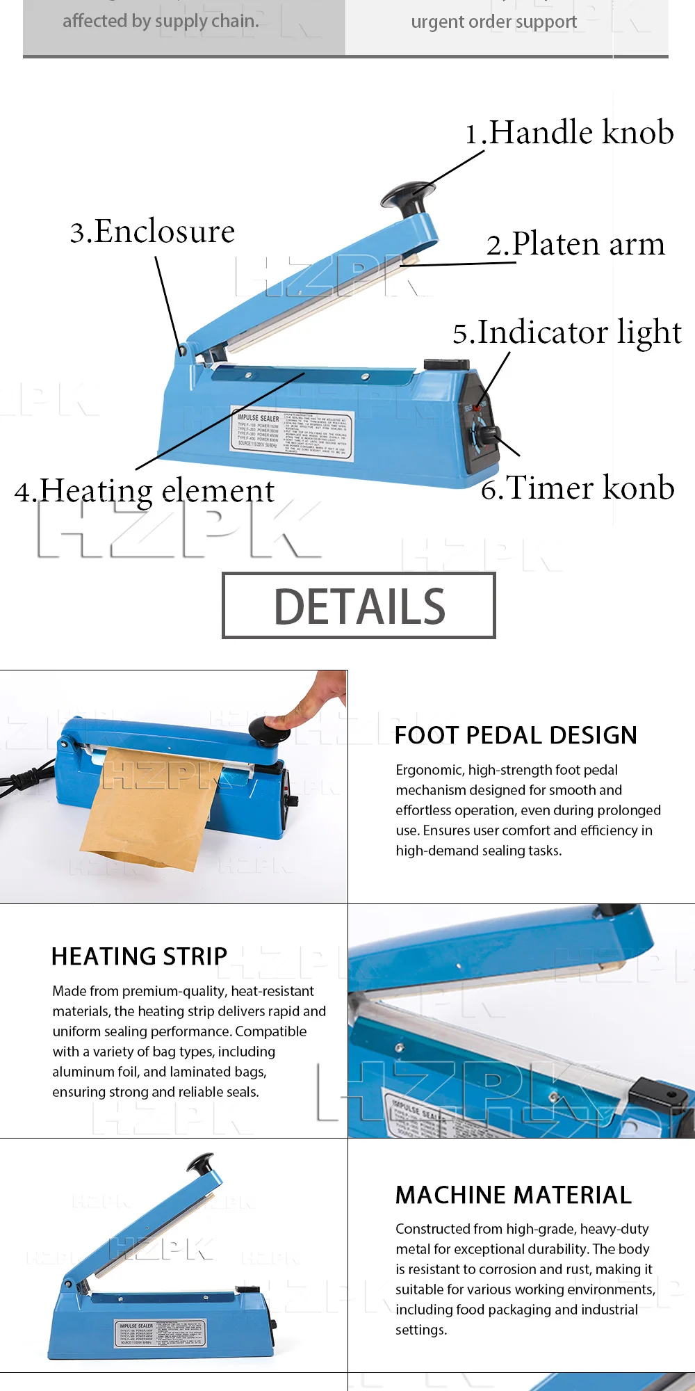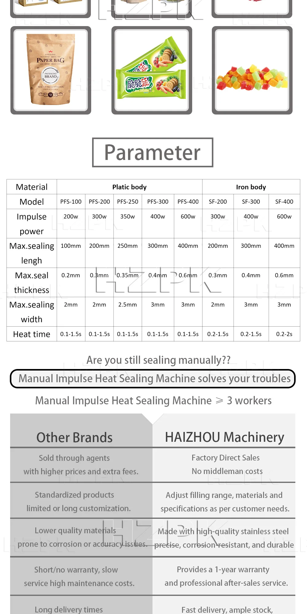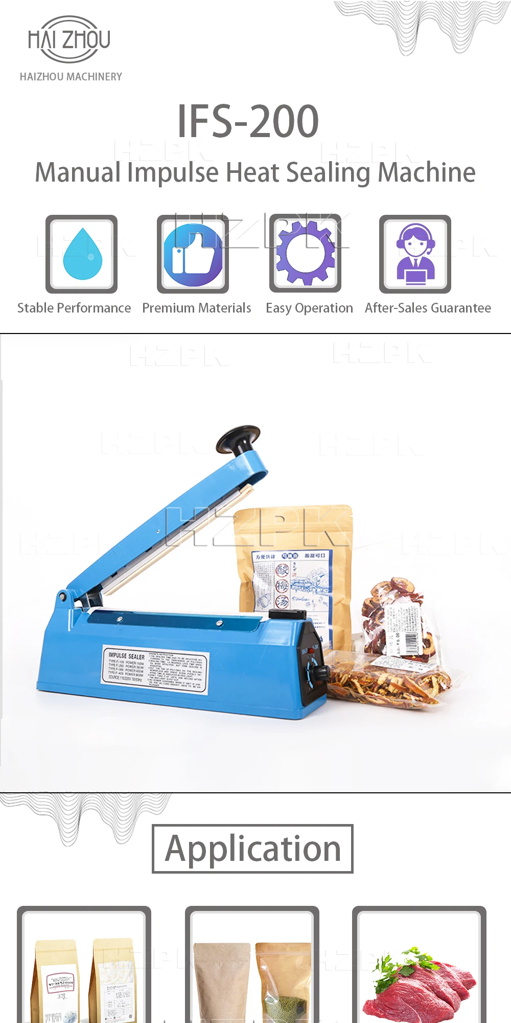 HAIZHOU Manual Impulse Heat Sealing Machine for Plastic Bags 200mm Iron Body Bag Sealer for Packaging IFS-200