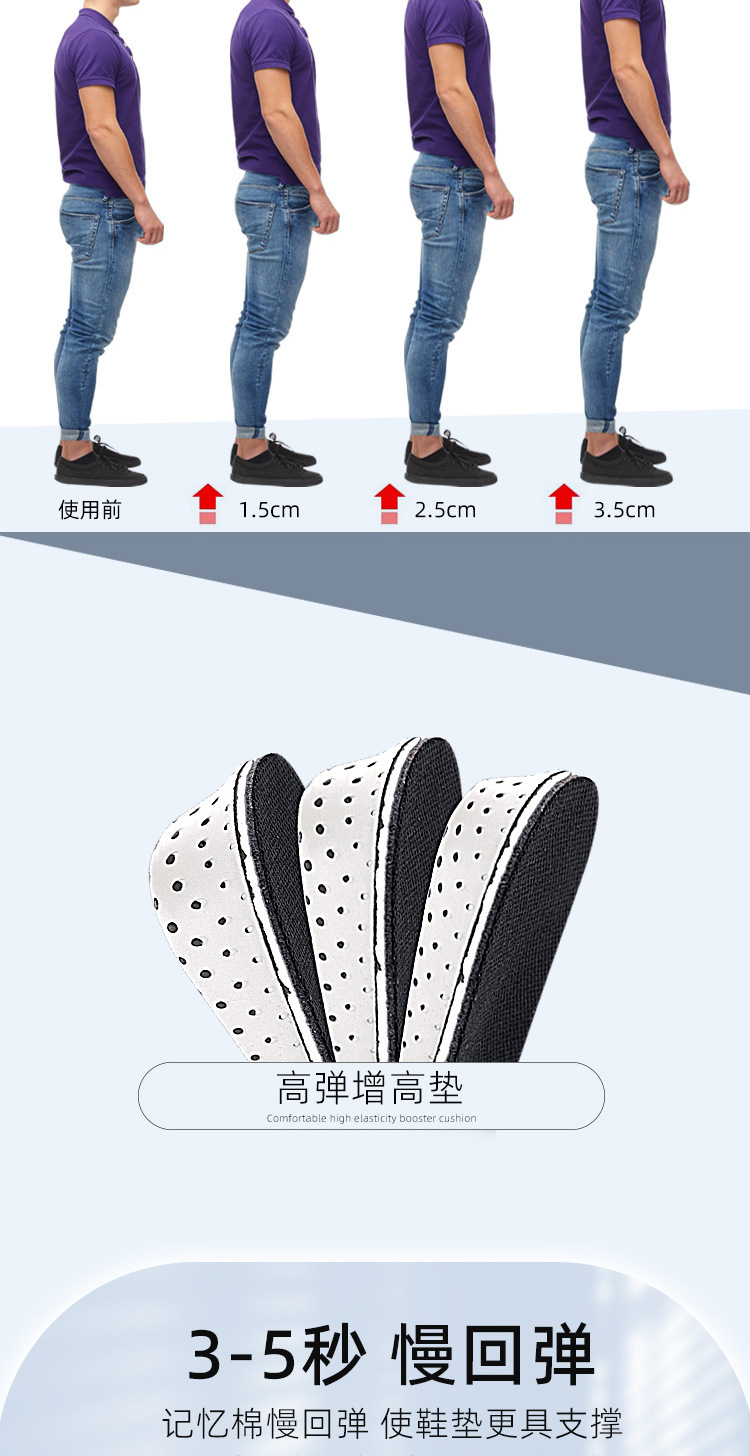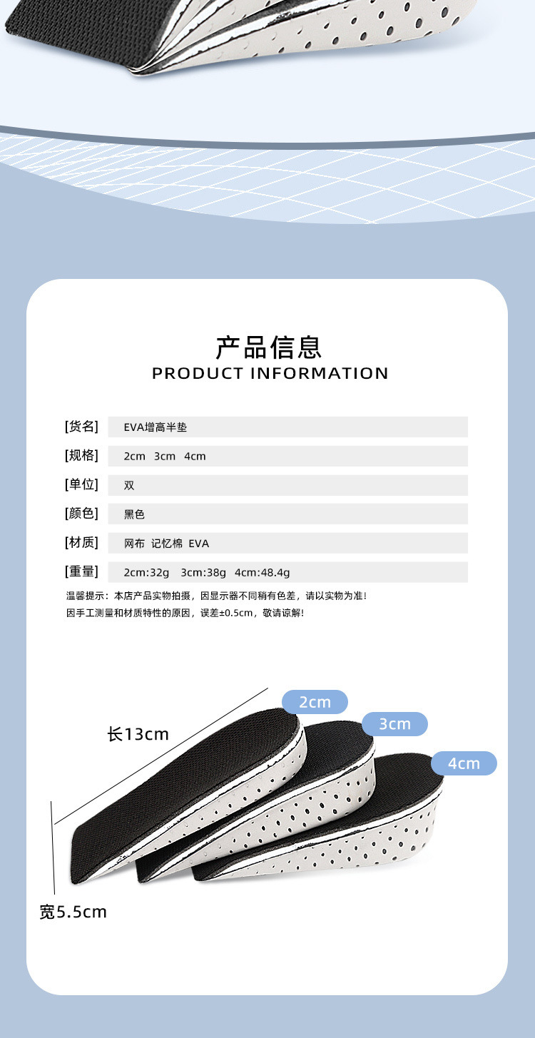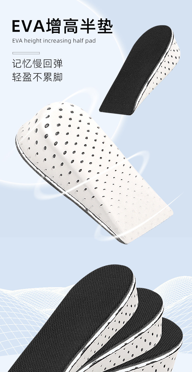 Half Shoe Insoles Heel Insert Sport Cushion Height Increase EVA Memory Foam Heel Lifting 2/3/4/5CM Taller Invisible Heighten Pad