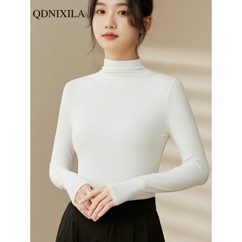 Half Turtleneck Modal Bottoming Shirt Women Autumn Winter New Inner Wear Fashion Slim Black Thickened Long Sleeve Top Pullover