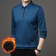 Half Zipper Fleece-lined Thickened Polo Shirt Men Polo Collar Solid Color Blue L