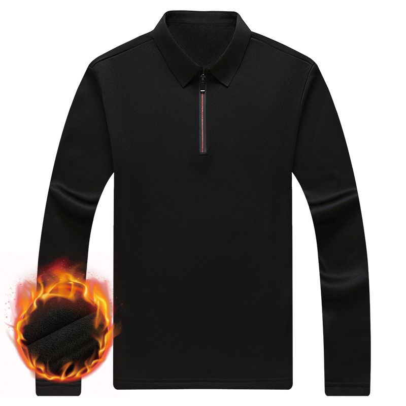 Half Zipper Fleece-lined Thickened Polo Shirt Men Polo Collar Solid Color Cyan M