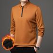 Half Zipper Fleece-lined Thickened Polo Shirt Men Polo Collar Solid Color Orange L