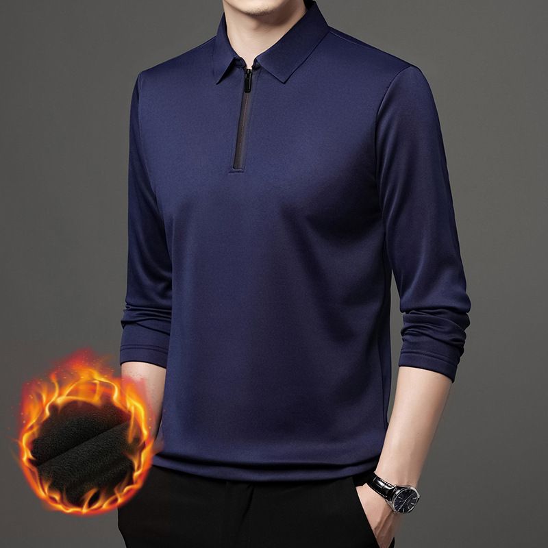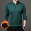 Half Zipper Fleece-lined Thickened Polo Shirt Men Polo Collar Solid Color Wine Red 2XL