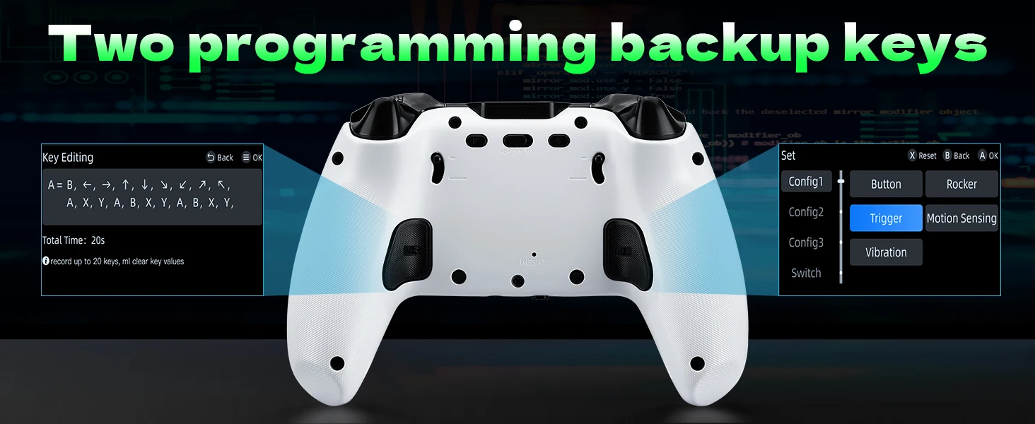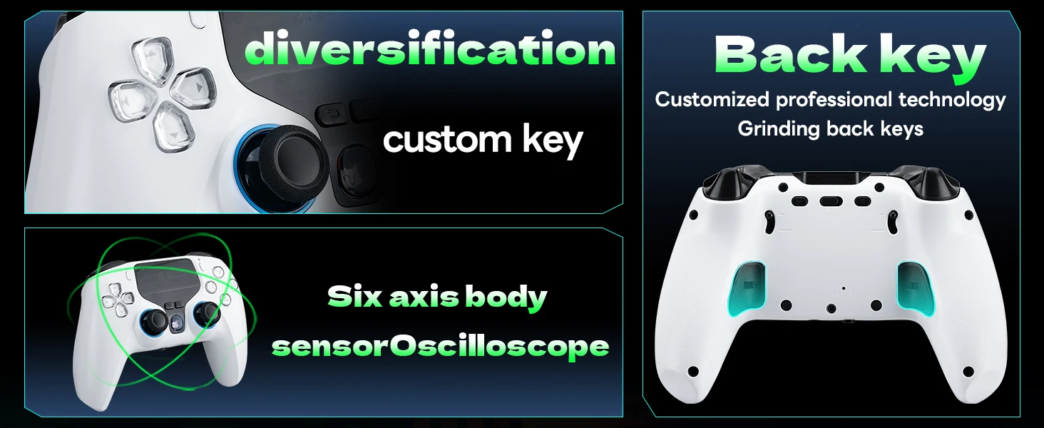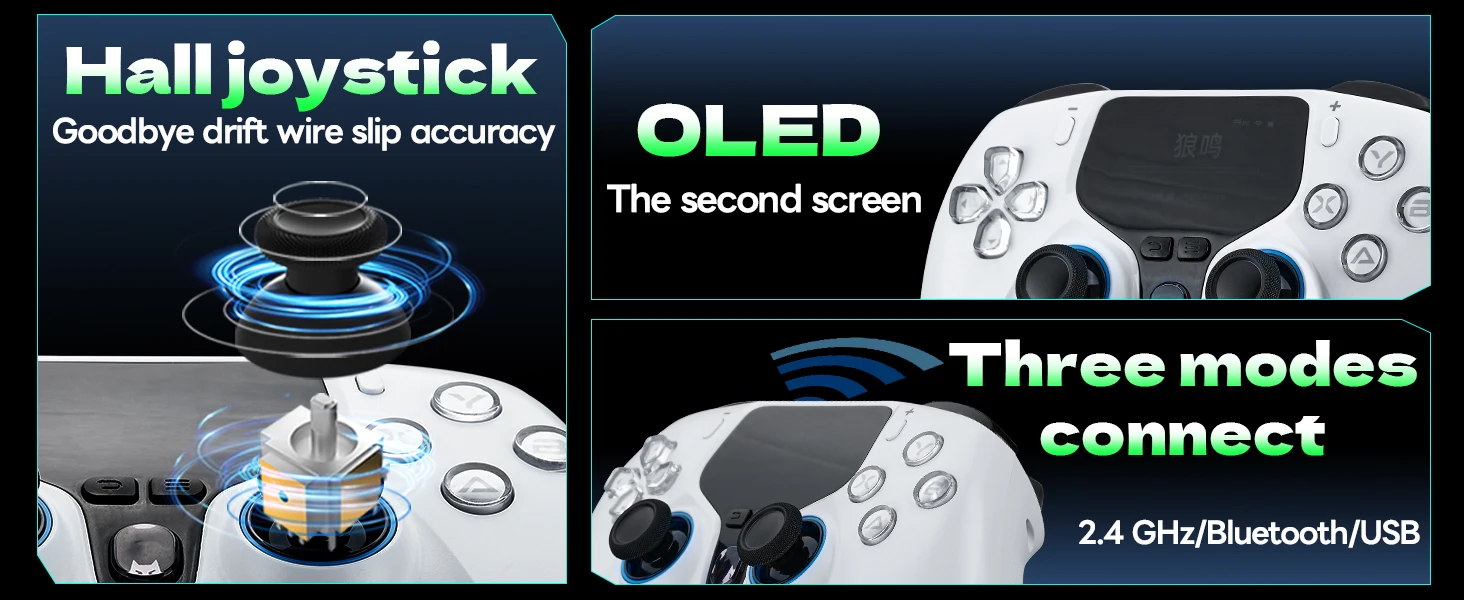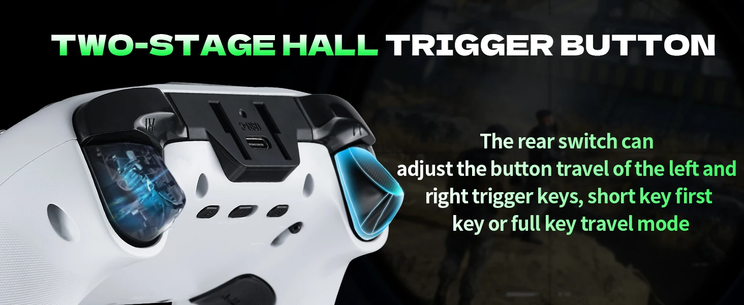 • Hall Effect Joysticks & Hall Effect Triggers (L2/R2) with adjustable trigger travel (short/long modes).