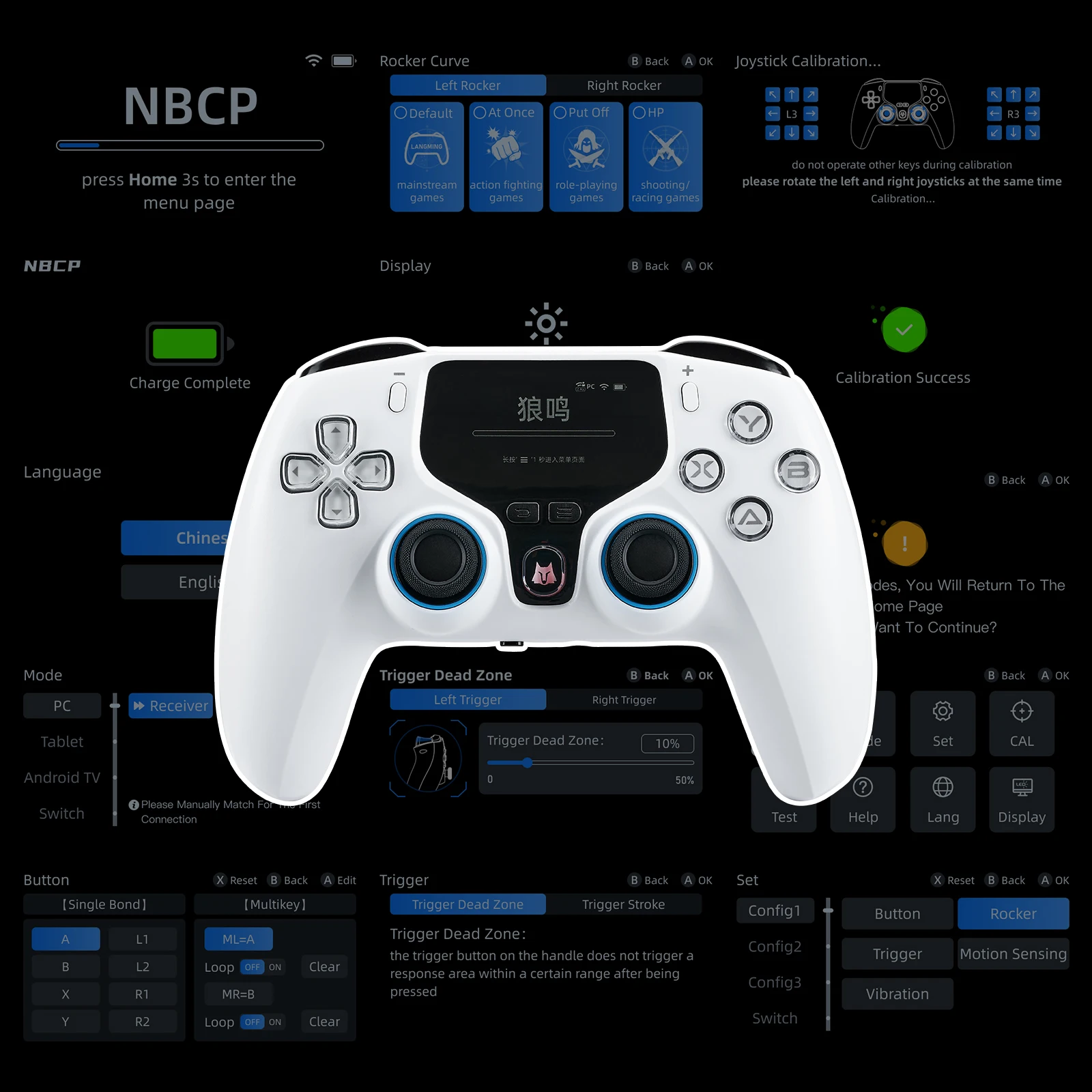 • Joystick calibration / Trigger calibration / Gyro calibration.