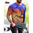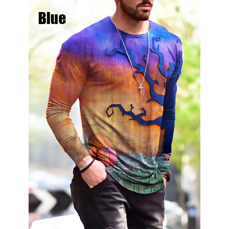 Halloween Autumn And Winter Men S Print Simple Long-Sleeved T Shirt Blue 2XL