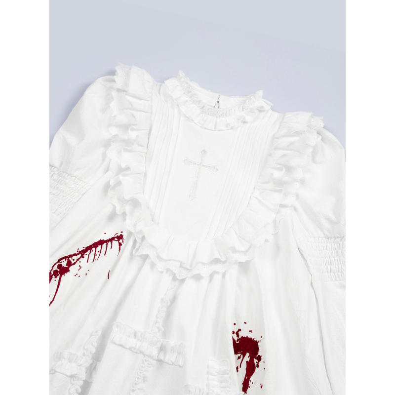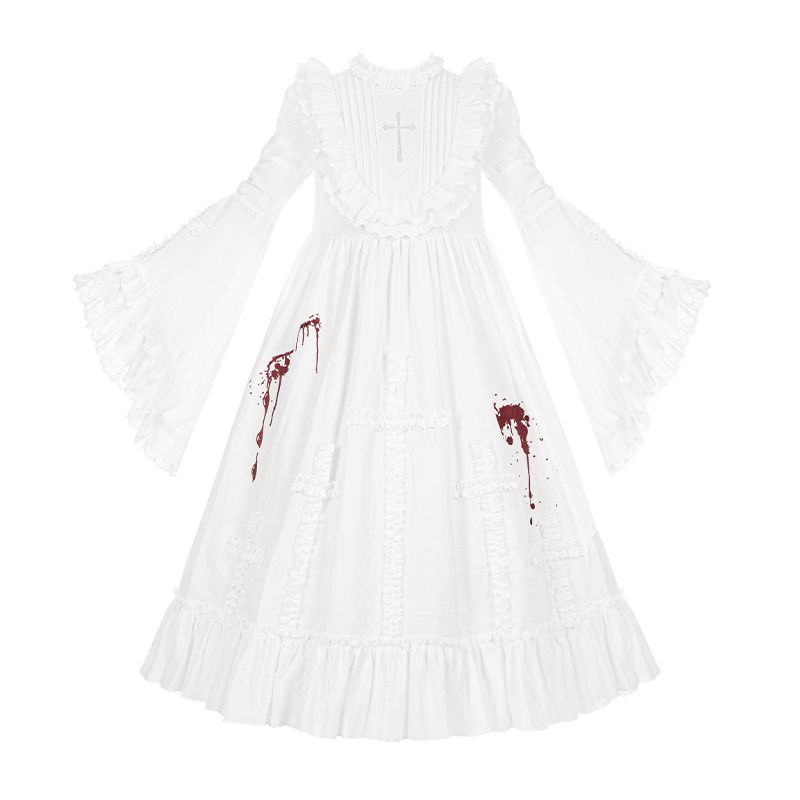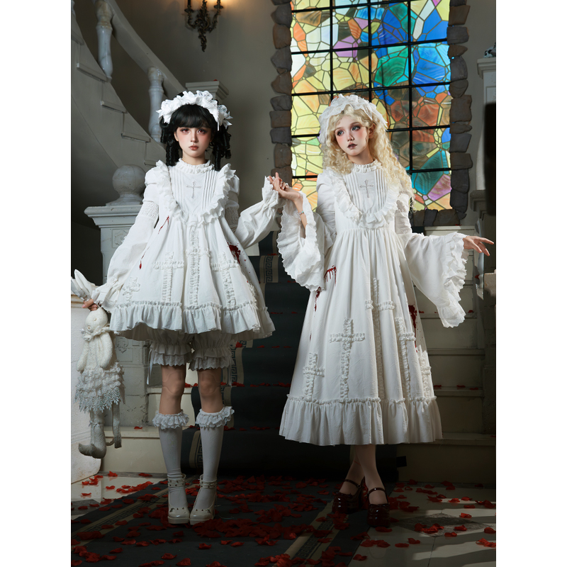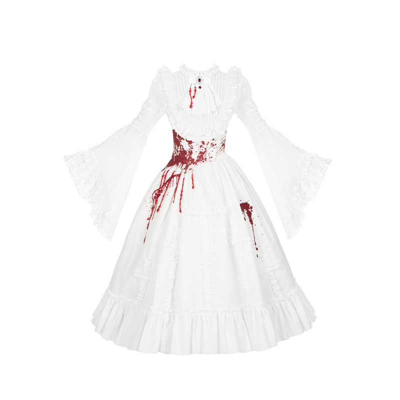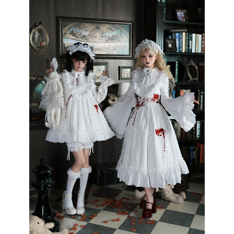 Halloween Cos Lolita Dress Set French Elegant Court Style Retro Long Sleeve OP Lolita Princess White Long Dress Women Autumn New