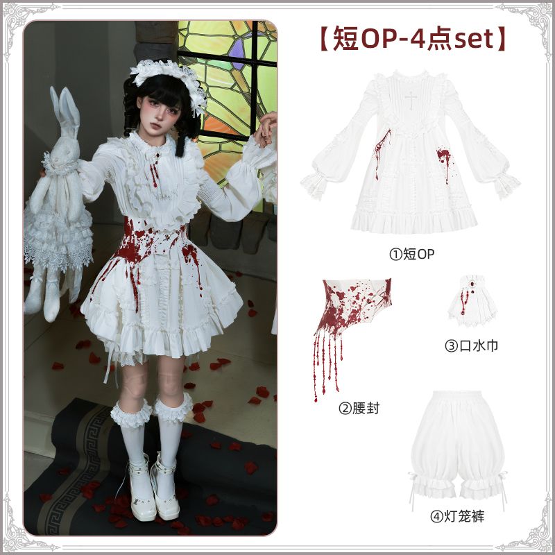 Halloween Cos Lolita Dress Set French Elegant Court Style Retro Long Sleeve OP Lolita Princess White Long Dress Women Autumn New