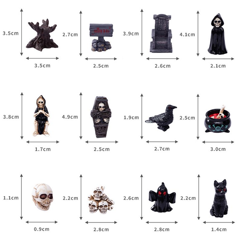 Halloween Resin Ghost Skull Tombstone Miniature Figurines Dollhouse Accessories Halloween Home Table Flower Pot Decor