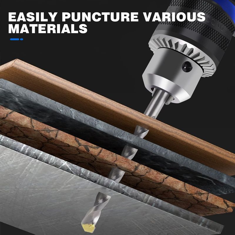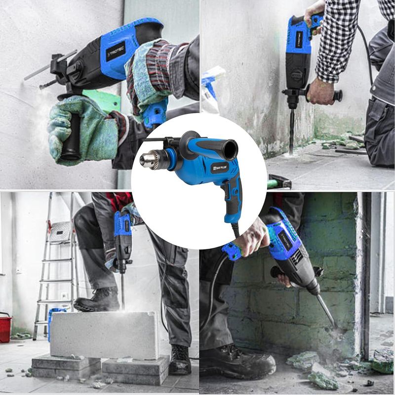 【Hammer & Impact Drill 2 In 1】By turning on or off a hammer drill's impact mechanism according to your task, it not only possess a drilling feature, but also works as an impact drill that provides a rapid succession of short hammer thrusts to break through concrete, stone, wood and metal with less effort.