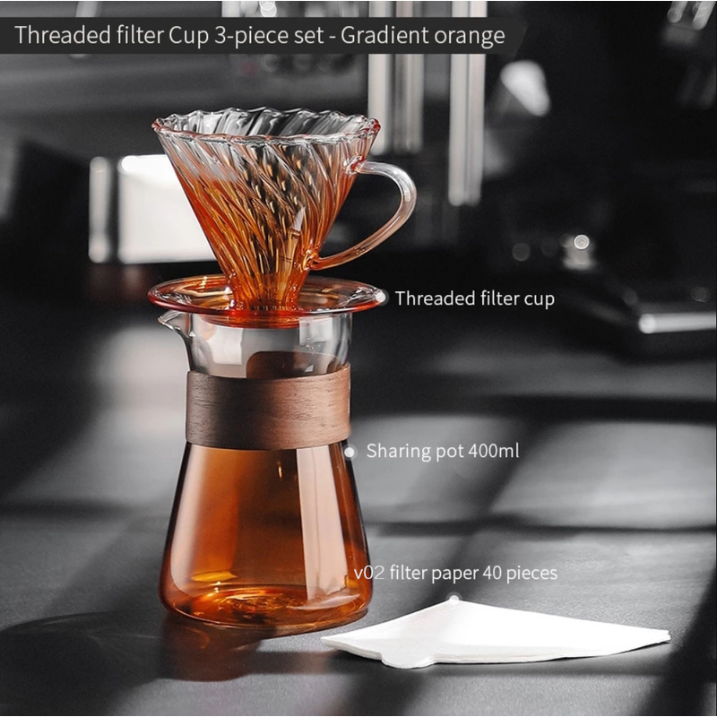 Hand Brewed Coffee Maker Coffee Filter Sharing Pot Set Borosilicate Glass Dripper Set Coffee Server with V02 Coffee Filter