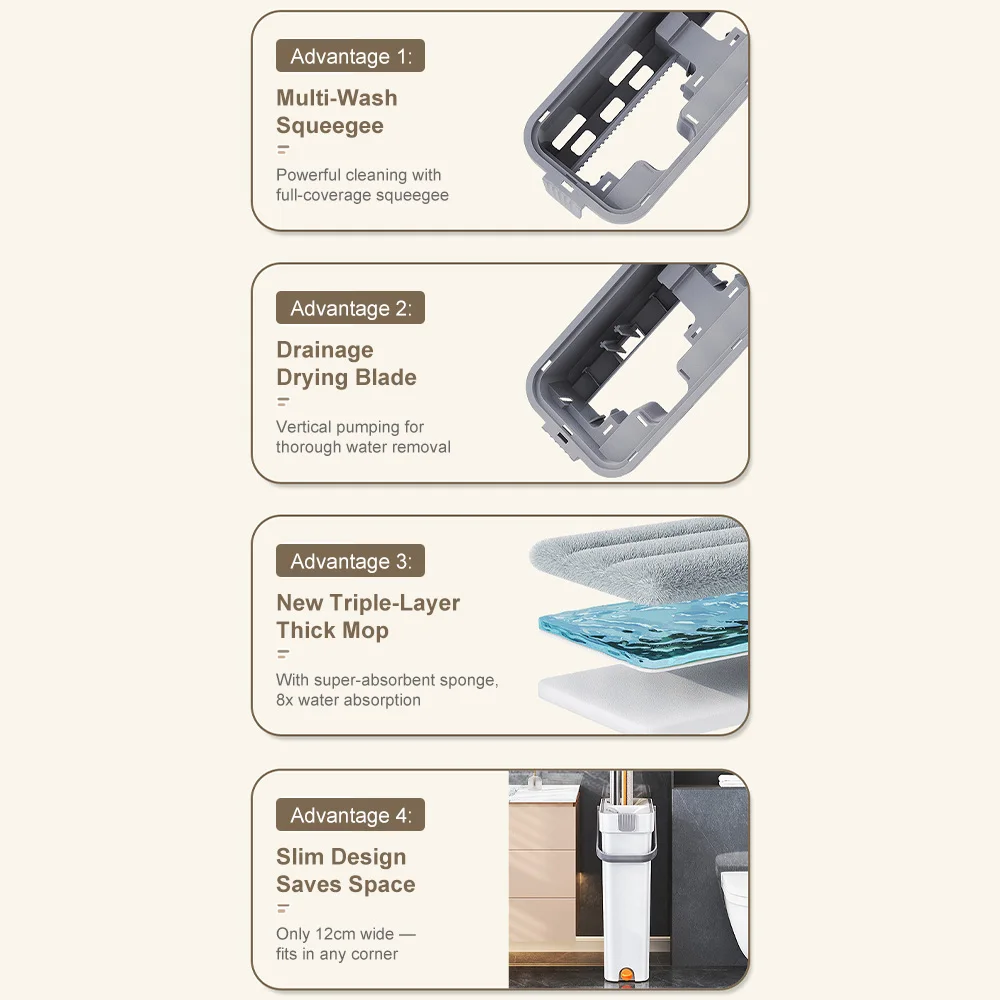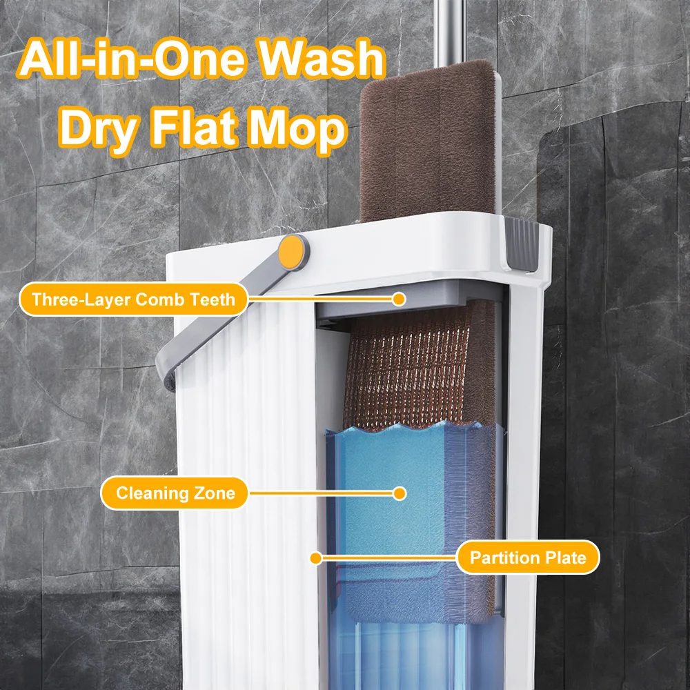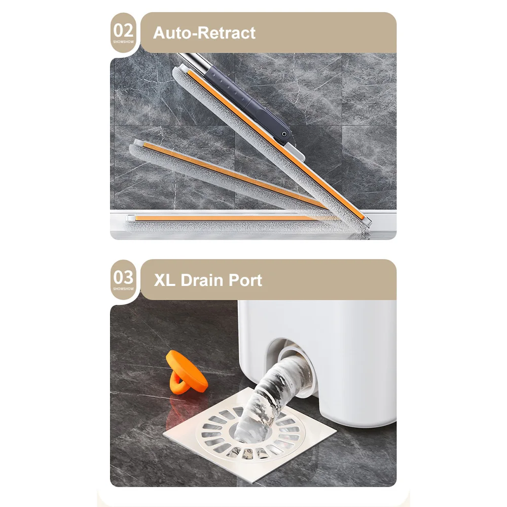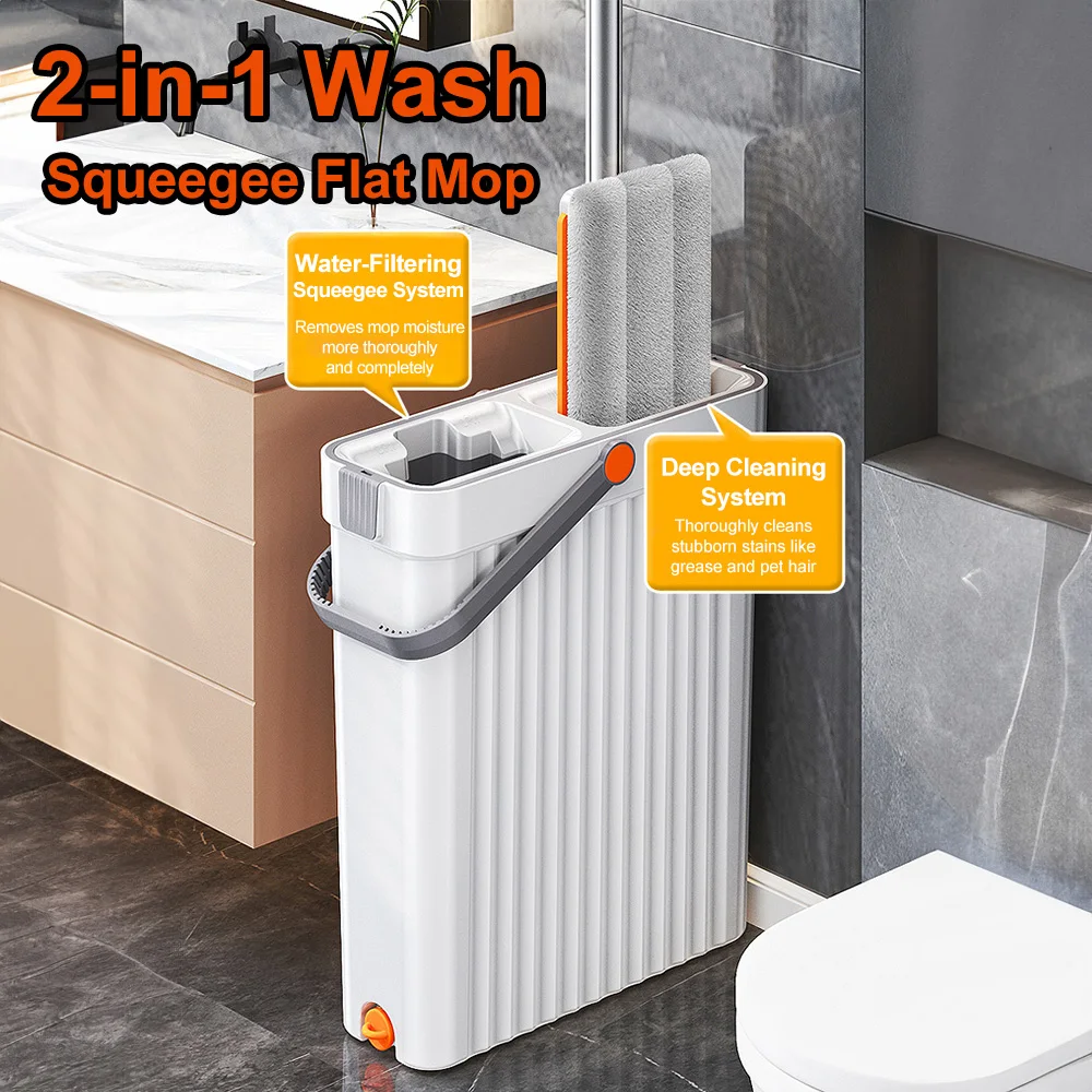 Hand Free Spin Flat Mop With Bucket Set 2 in 1 Wash Squeegee 33cm Flat Mop Wet Dry Cleaning Tool For Home Floor Toilet Kitchen