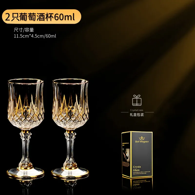 Hand-painted French imported gold cda crystal red wine glasses set home whisky strong wine glasses 2 Pack.