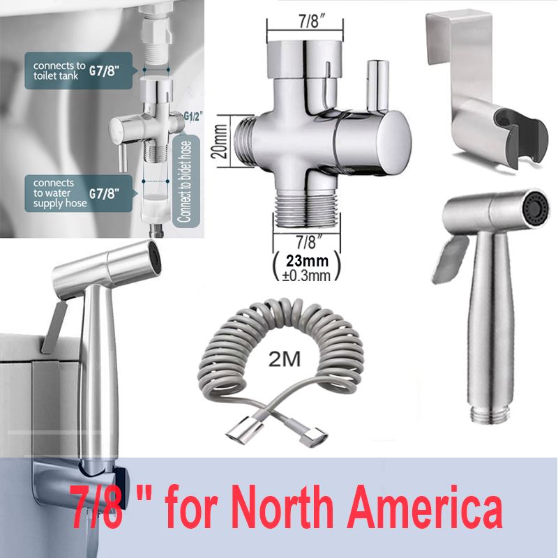 Handheld Bidet Toilet Sprayer Kit stainless steel spray gun with 3 Way Valve,bellows Used for personal hygiene and pet bathing