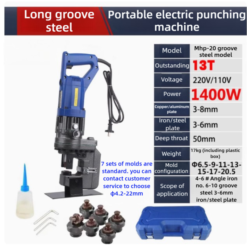 Handheld Electric Hydraulic Punch Machine 1400W Electric Punching Channel Steel Angle Iron Aluminum Iron Plate Hole Puncher