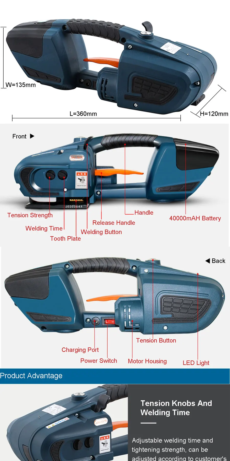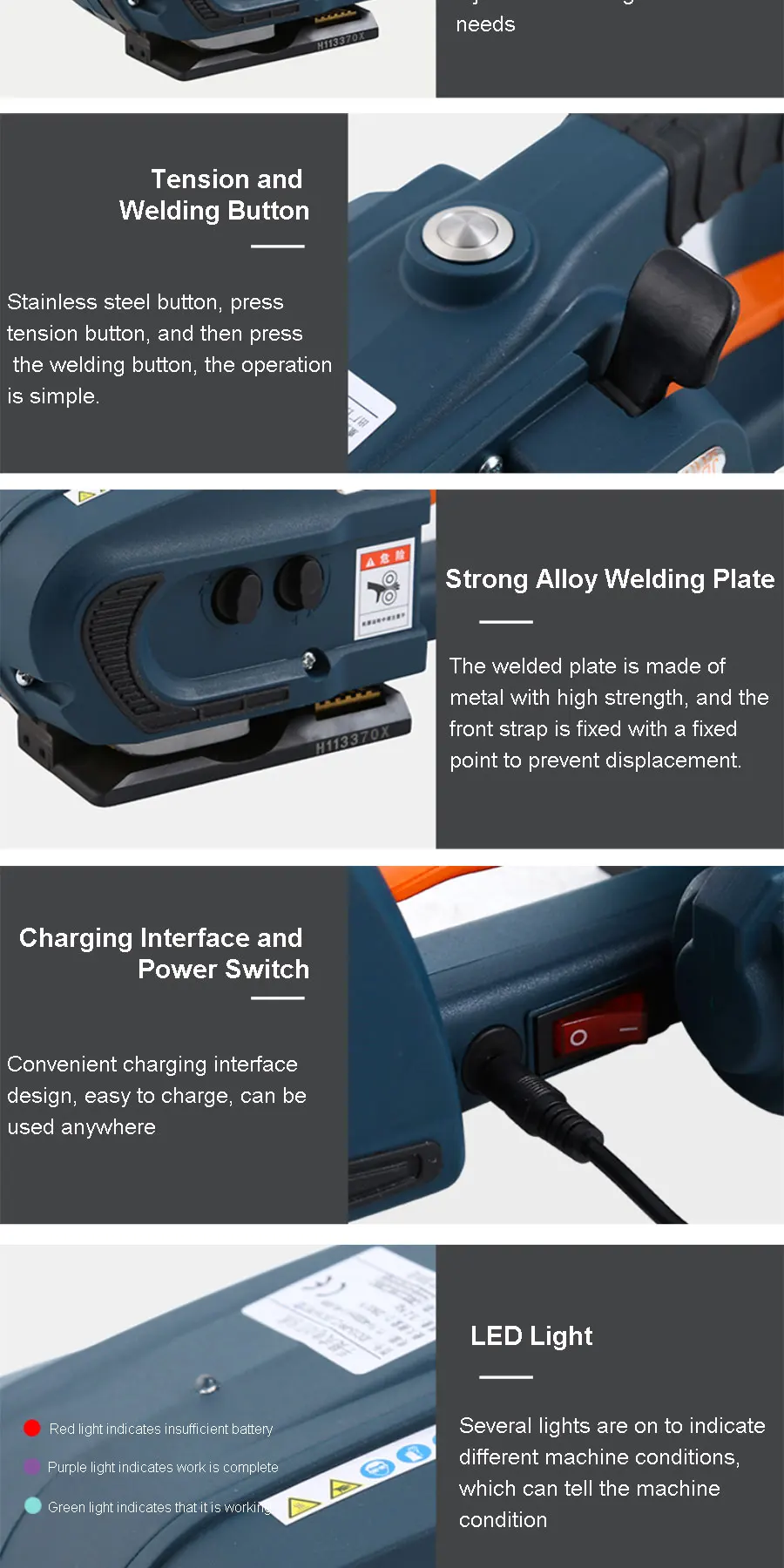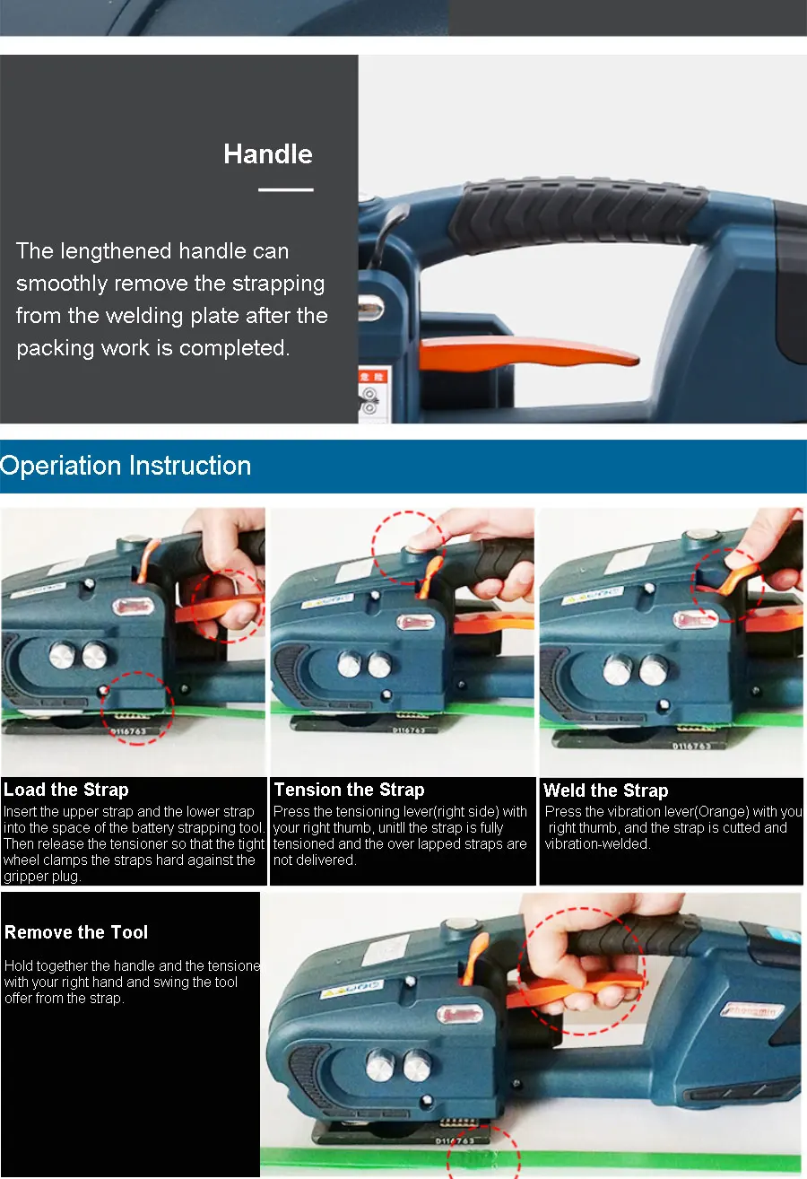 Handheld Battery Powered Strapping Tool is suitable for the packing of the steel, timber, brick, fiber for its compact design and light weight that enables portability. It is used for paper industry, aluminum industry, steel industry, wood, wooden packaging,chemical fiber,cotton,tobacco, chemicals, metal industry and so on.