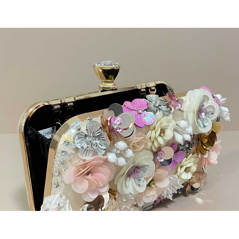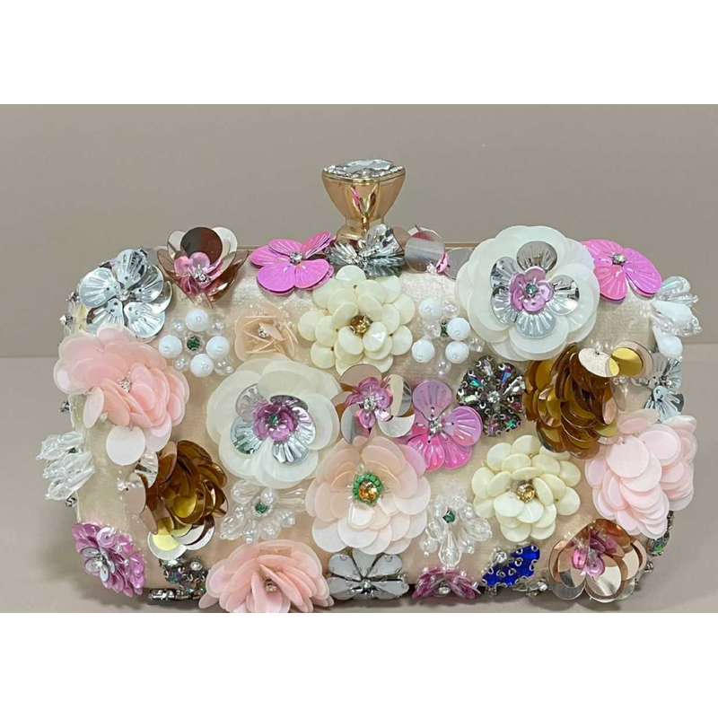 Handmade beaded embroidery ladies' fashionable dinner party hand-embroidered flower beaded clutch handbag hand-held party bag