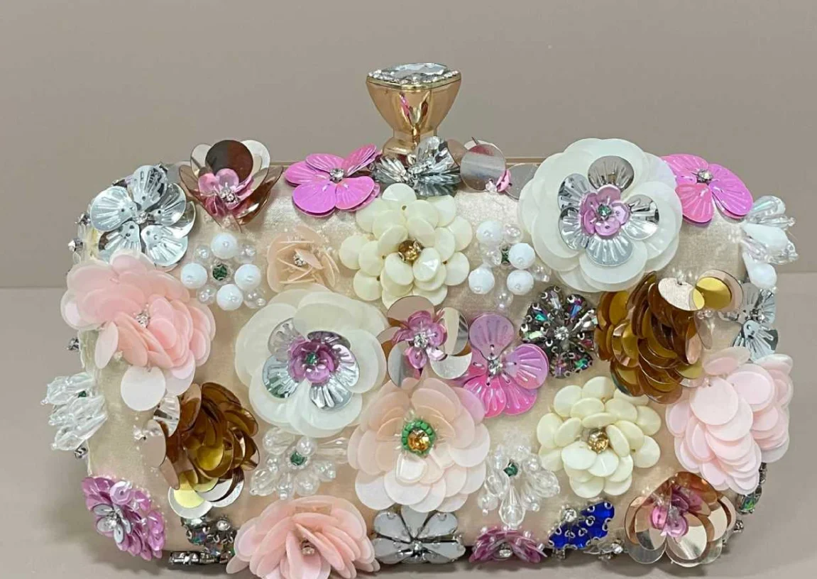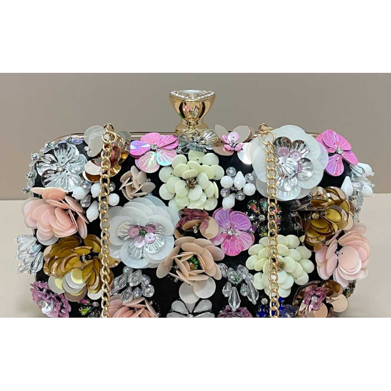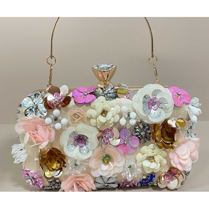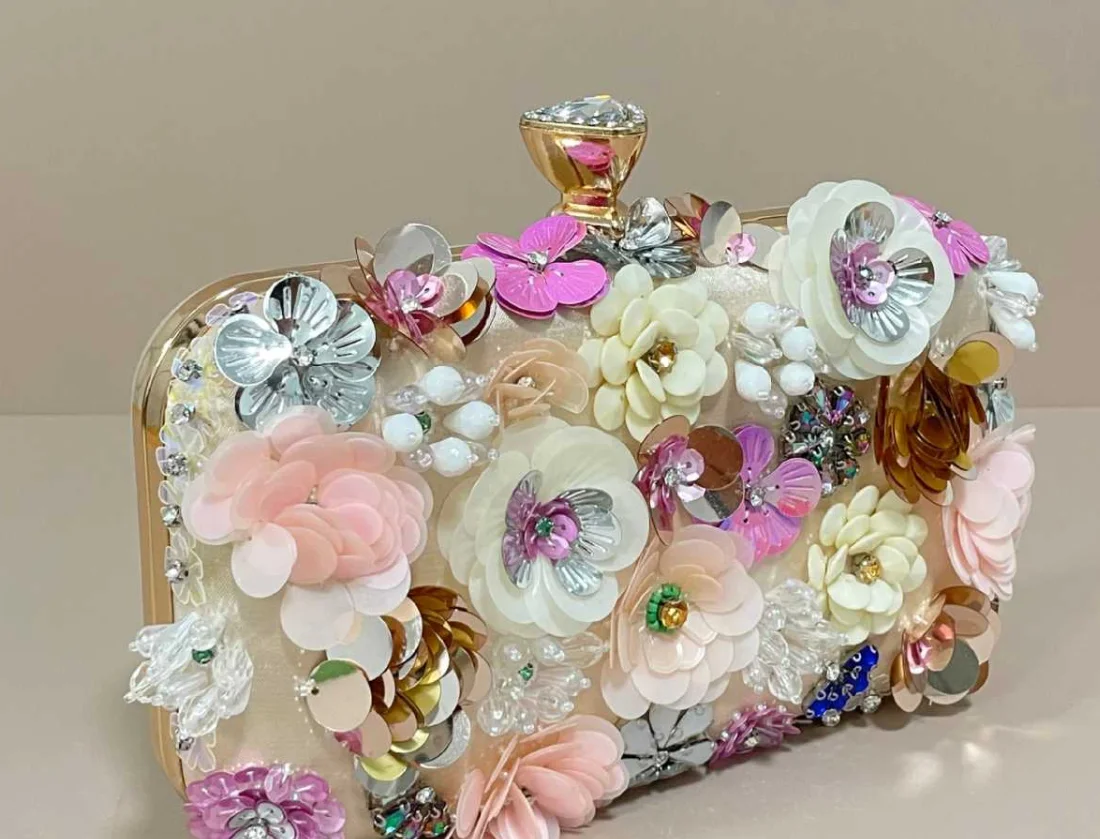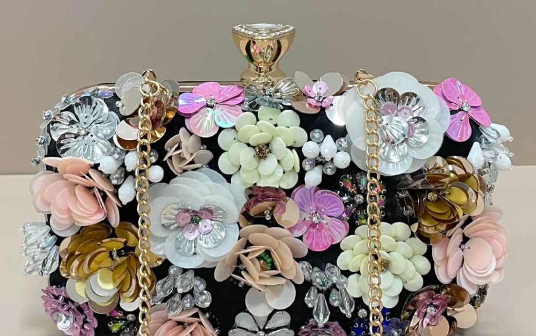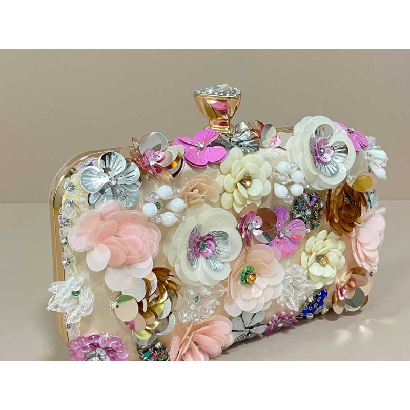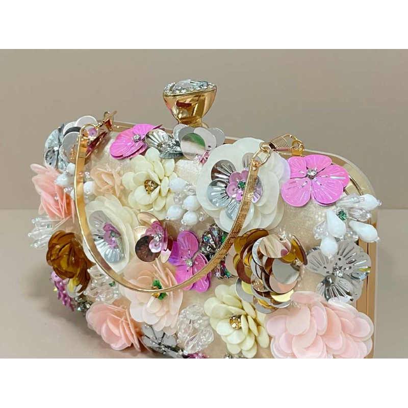 Handmade beaded embroidery ladies' fashionable dinner party hand-embroidered flower beaded clutch handbag hand-held party bag