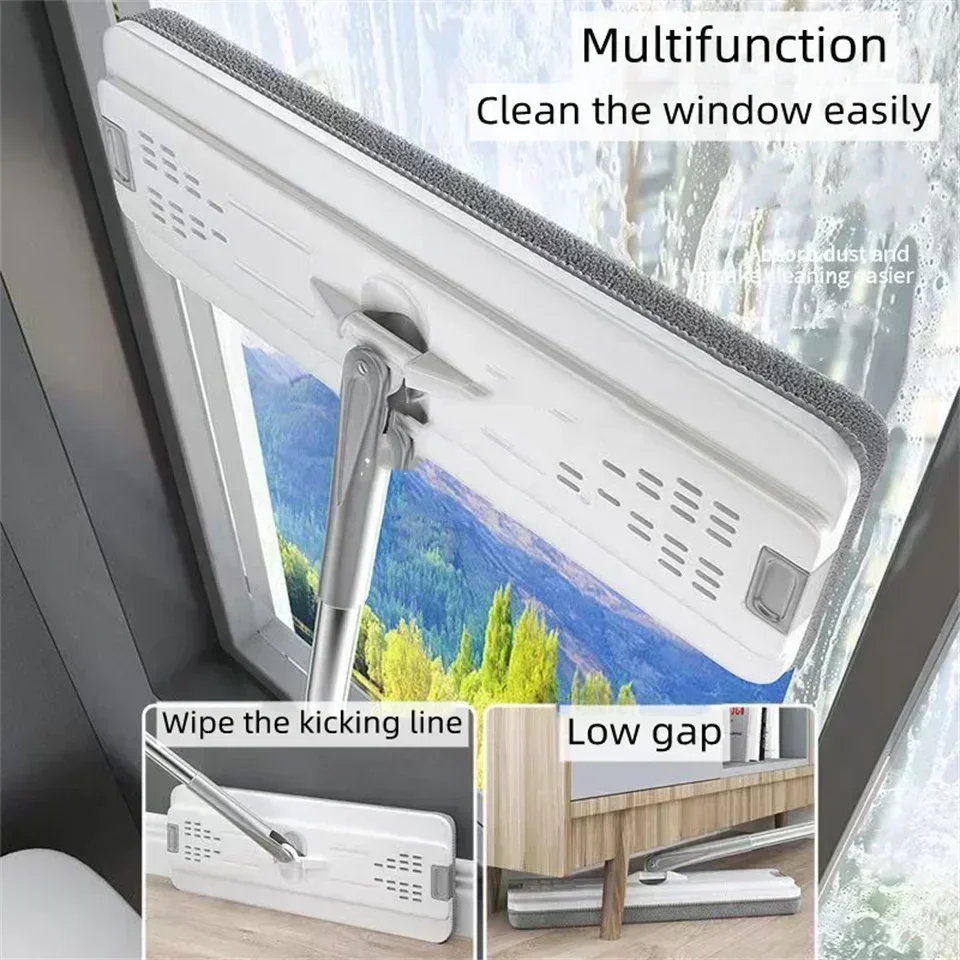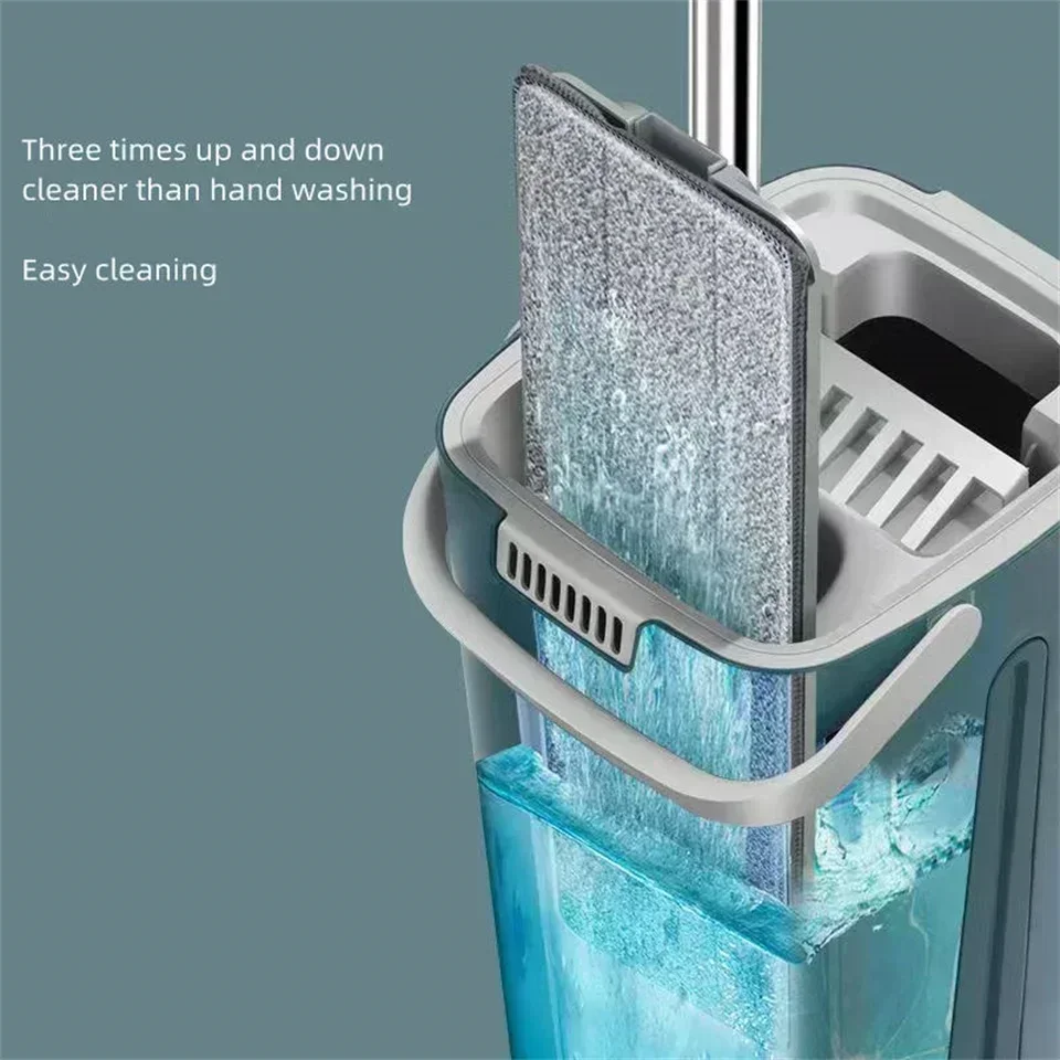 Hands-free Flat Floor Mop and Bucket Microfiber Magic Cleaning Tool with Squeegee Scalable Wet/Dry Use Home Kitchen Household