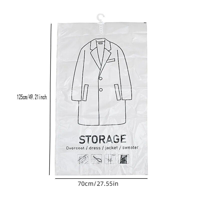 Closet Organizer: with our hanging vacuum bags to re-arrang the clothing hanger placement, the horizontal space in the wardrobe is reduced. Additionally, the use of vacuum technology can decrease the original storage space of the garments, thereby increasing the available storage space in the wardrobe.