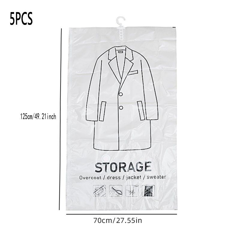 Hanging Vacuum Storage Space Saver Bags for Clothes for Suits, Dress, Jacket