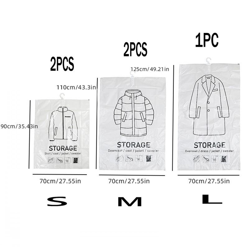 Hanging Vacuum Storage Space Saver Bags for Clothes for Suits, Dress, Jacket