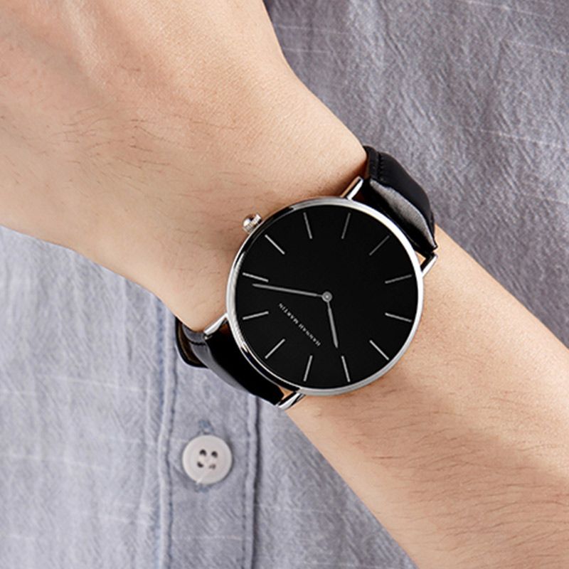 HANNAH MARTIN Brand Japan Quartz Movement Men's Waterproof Wrist Watches Fashion Luxury Ultra Thin Leather Creative Male Watches