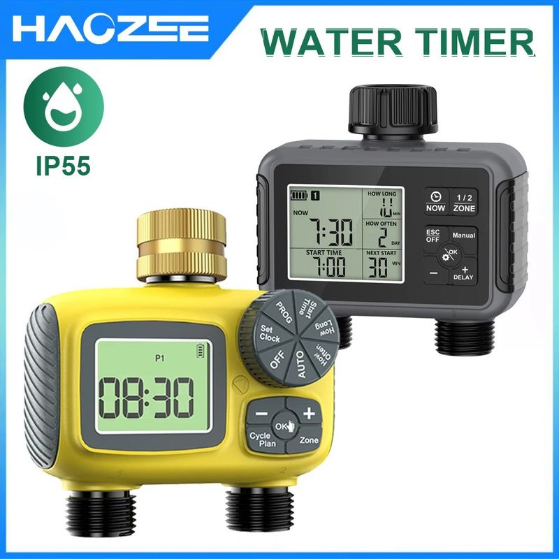 Haozee Smart Water Timer Intelligent 1/2/3-Outlet Irrigation Watering System Sprinkler Timer Garden Programmer IPX7 LCD Display