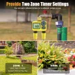 🌱 Customizable Watering Durations and Intervals: Tailor your watering routine to perfection. This sprinkler timer allows you to set watering durations ranging from 1 minute to 5 hours 59 minutes for each of the 2 zones. Moreover, you can adjust the cycle watering interval to occur every 1 to 7 days or on specific days of the week from Monday to Sunday.