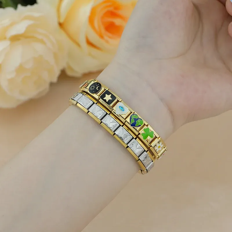 Hapiship New Original Golden Flower Heart Earth Cherry Coffee DIY Italian Charm Bracelet Stainless Steel Jewelry Making DJ1404-C