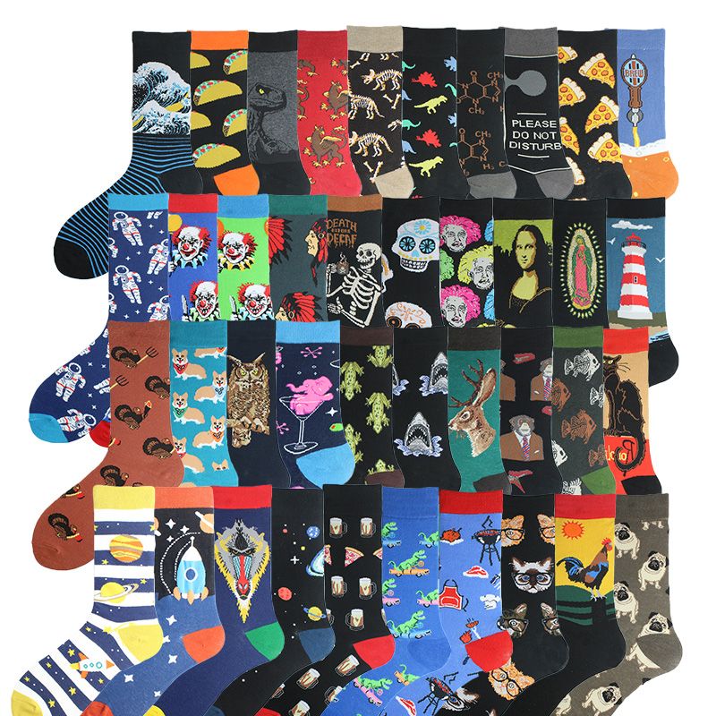 Happy Colorful Funny Socks Men Skateboard Shark Dinosaur Astronaut Planet Divertidos Hip Hop Sokken Harajuku Unisex Crew Socks