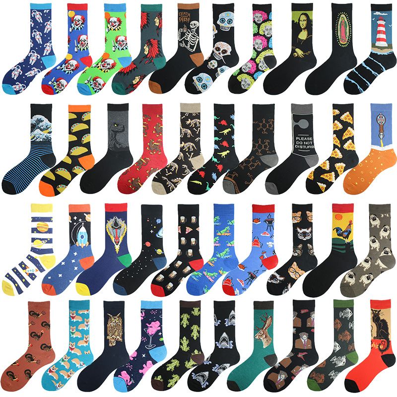 Happy Colorful Funny Socks Men Skateboard Shark Dinosaur Astronaut Planet Divertidos Hip Hop Sokken Harajuku Unisex Crew Socks