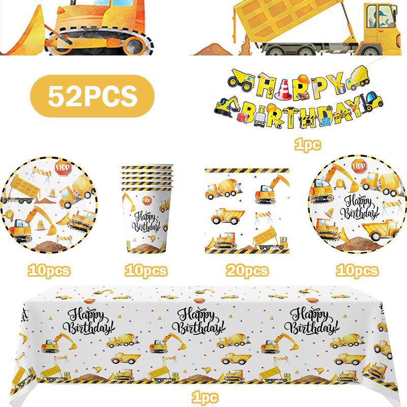 Happy Construction Site Birthday Decoration Kit Cup Plate Construction Truck Theme Balloons Banner Party Supplies for Boys Gifts