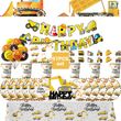 Happy Construction Site Birthday Decoration Kit Cup Plate Construction Truck Theme Balloons Banner Party Supplies for Boys Gifts