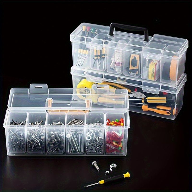 Hardware Tool Storage Box, Multi-Compartment Transparent Tool Organizer, Screw and Accessory Sorting Box, Household Screw, Wrenc