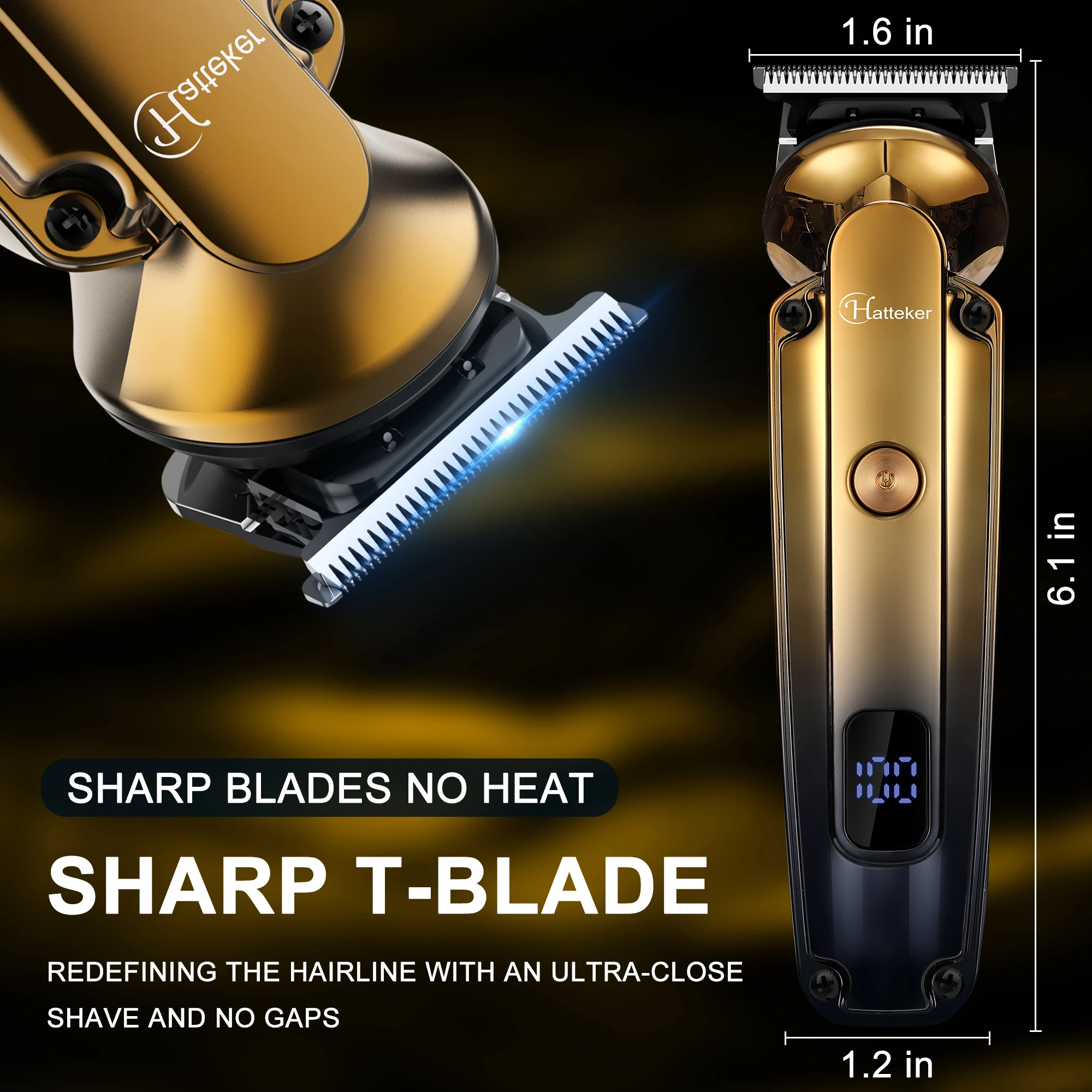 2. Sharp Heat-Free T-Blade: Ultra-close, gapless shaving redefines hairlines; no heat buildup ensures comfortable, irritation-free use.