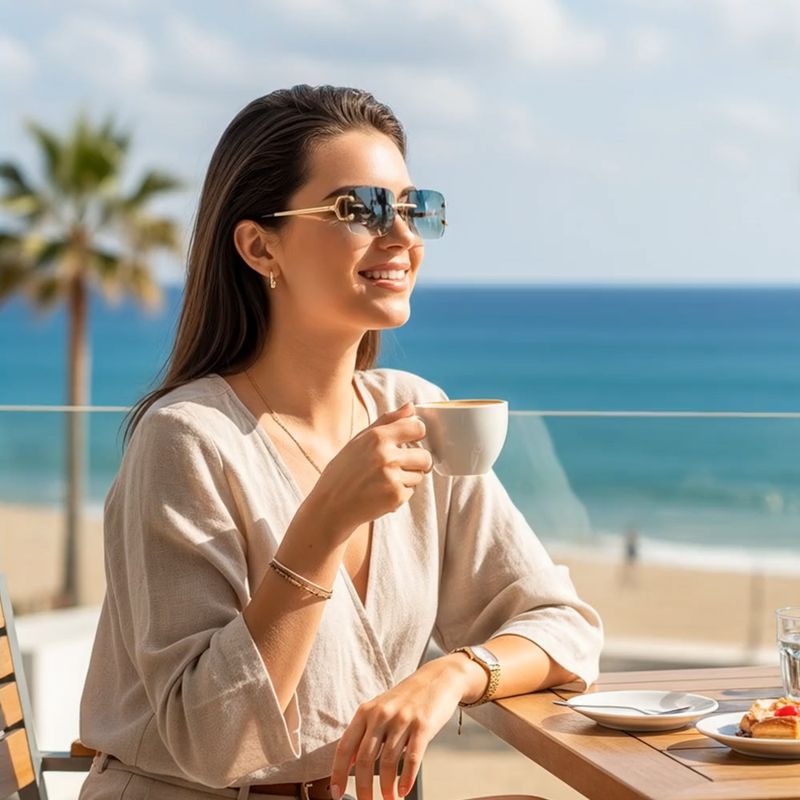 HBK Retro Rimless Sunglasses For Women Men Small Square Gold Frame Brand Design Tea Shades Rectangle UV400 Zonnebril Eyewear