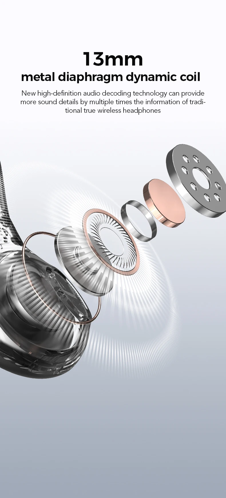 Comfortable ear hooks: Designed based on various ear shapes, providing 360° even pressure distribution, comfortable for extended wear, and secure during exercise.