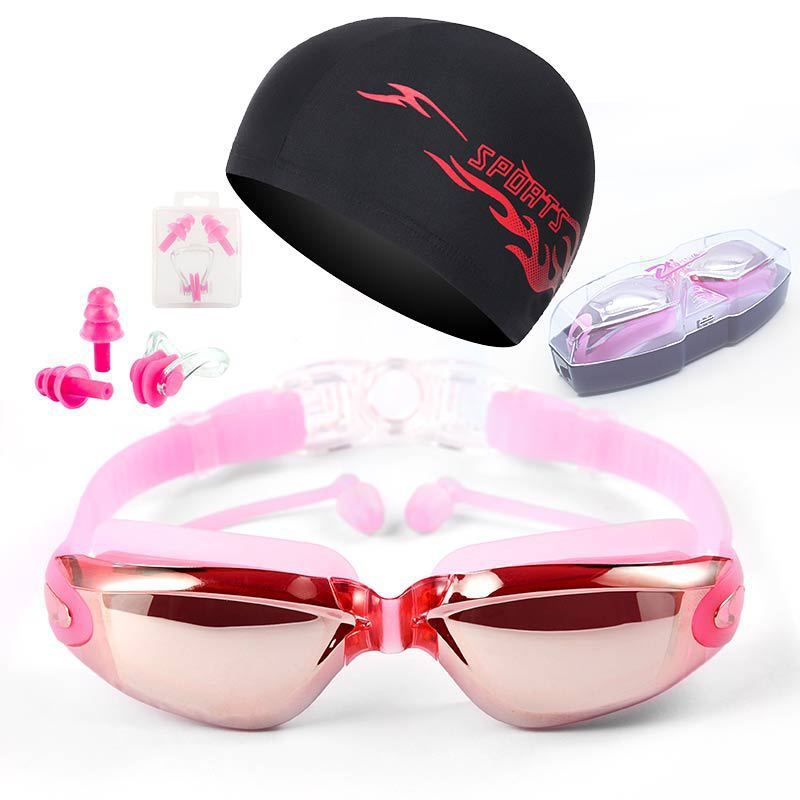 Swimming cap * 1+earplugs * 1 pair+nose clip * 1+swimming goggles * 1