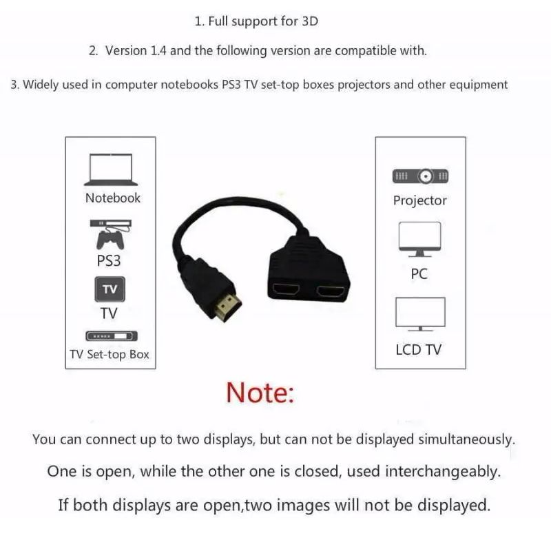 • 1 Input, 2 Outputs :With one input and two outputs, this HDMI splitter allows you to connect multiple devices to a single HDMI port.