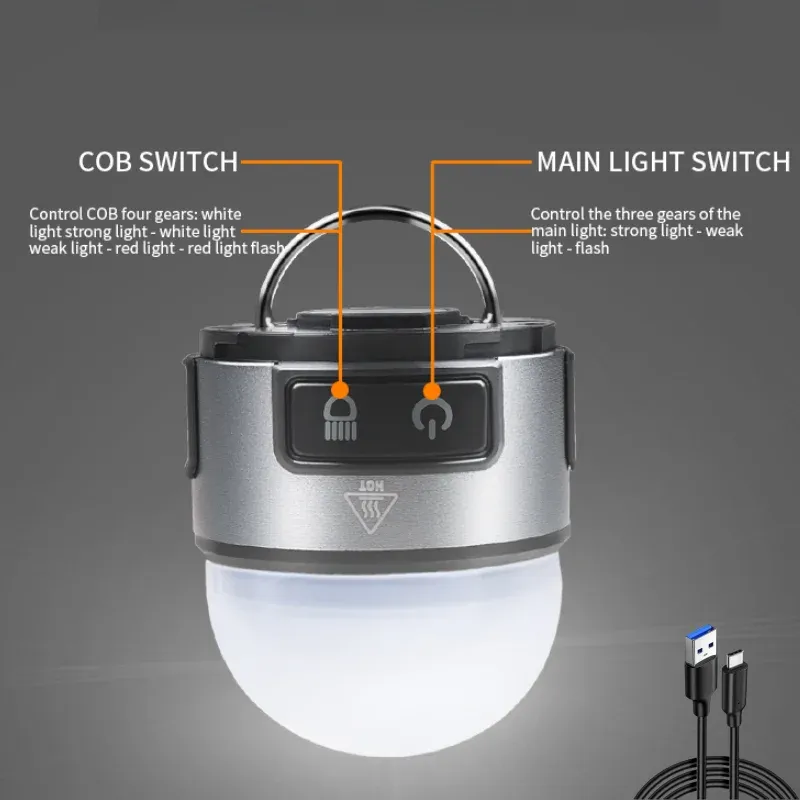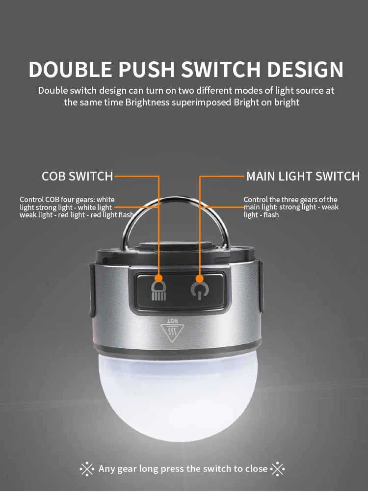 Switch: double push switch (main light switch + COB switch)
