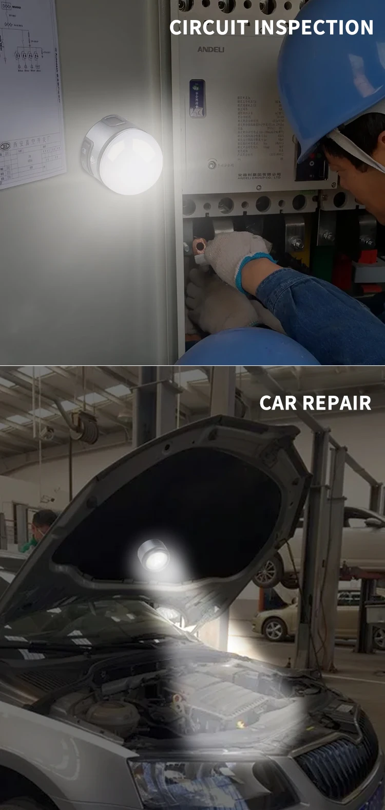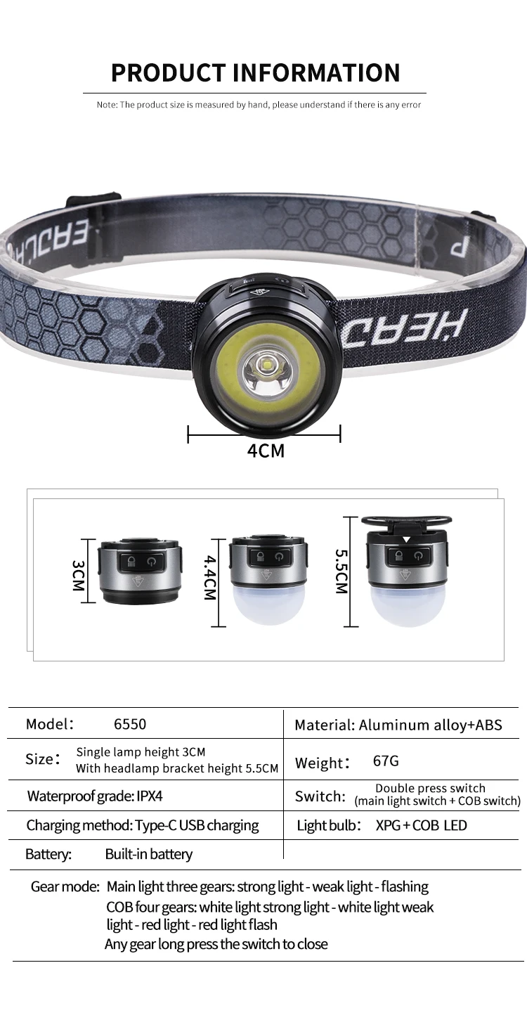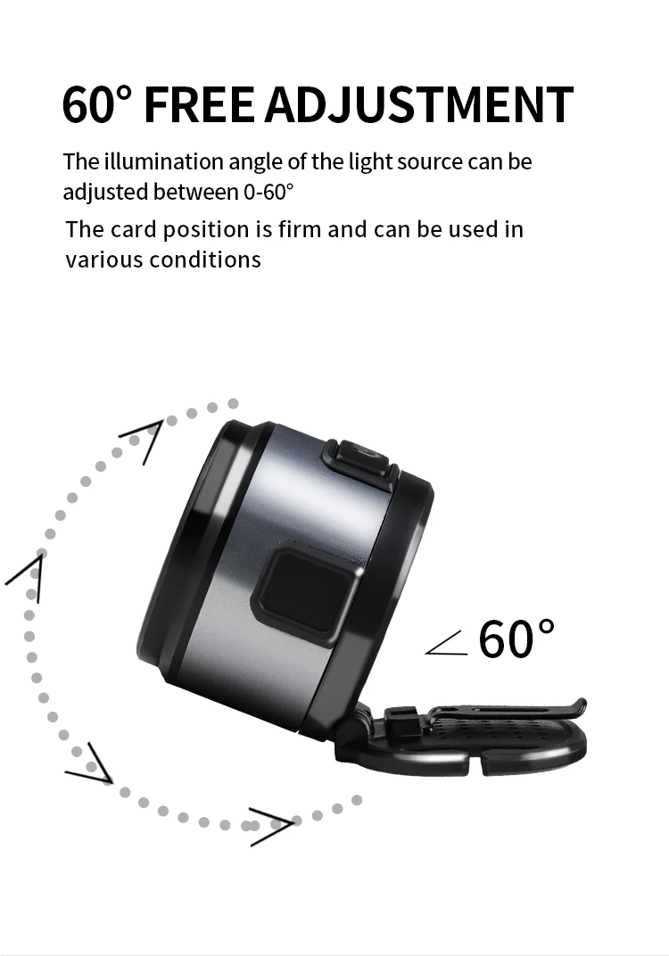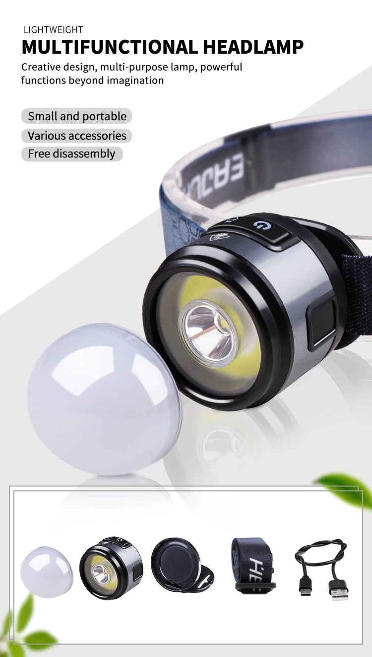 Features: Compact and portable, one light can be used for many purposes. The base has magnets and hooks. It can be used as a work light. It can be used as a mini camping light with a lampshade. The headlight strap is detachable. The headlight bracket is also designed as a hat clip light.