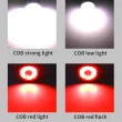 COB 4 levels: strong white light - weak white light - red light - flashing red light