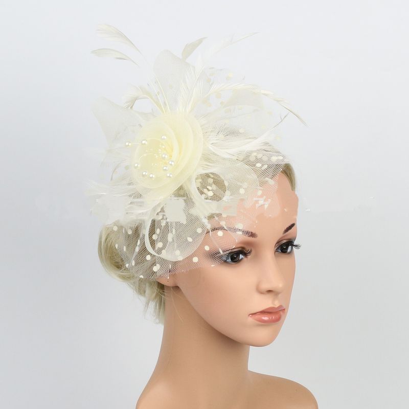 Headwear Bridal Hair Accessories Mesh Billycock Headband Beige
